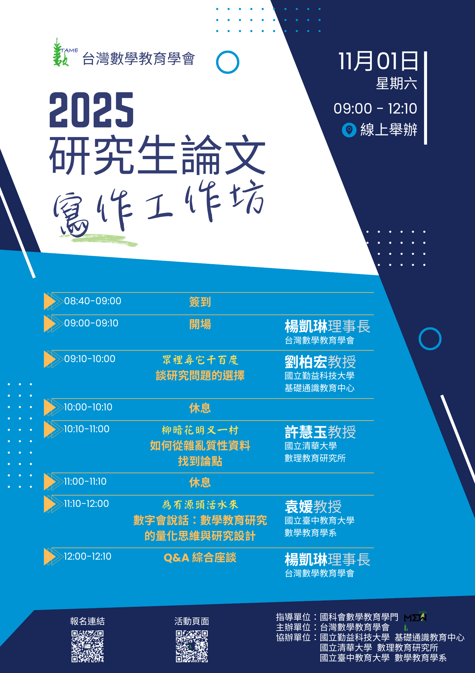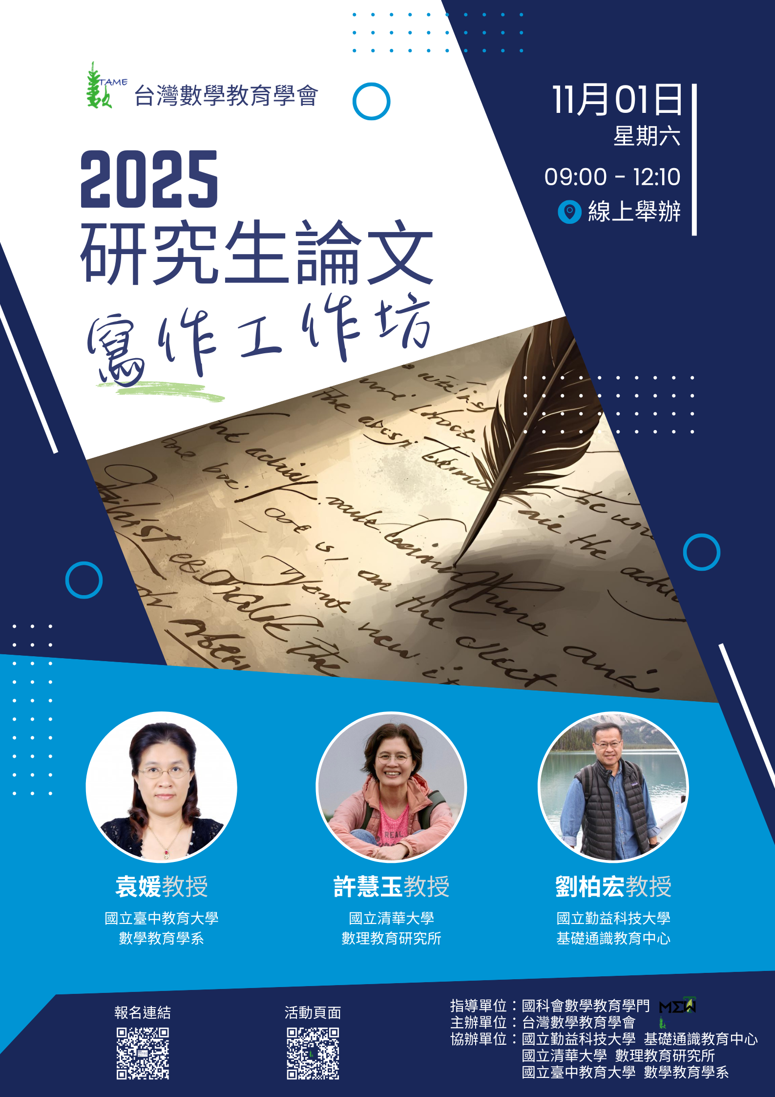 2025 台灣數學教育學會研究生論文寫作工作坊【114年11月01日(六)】